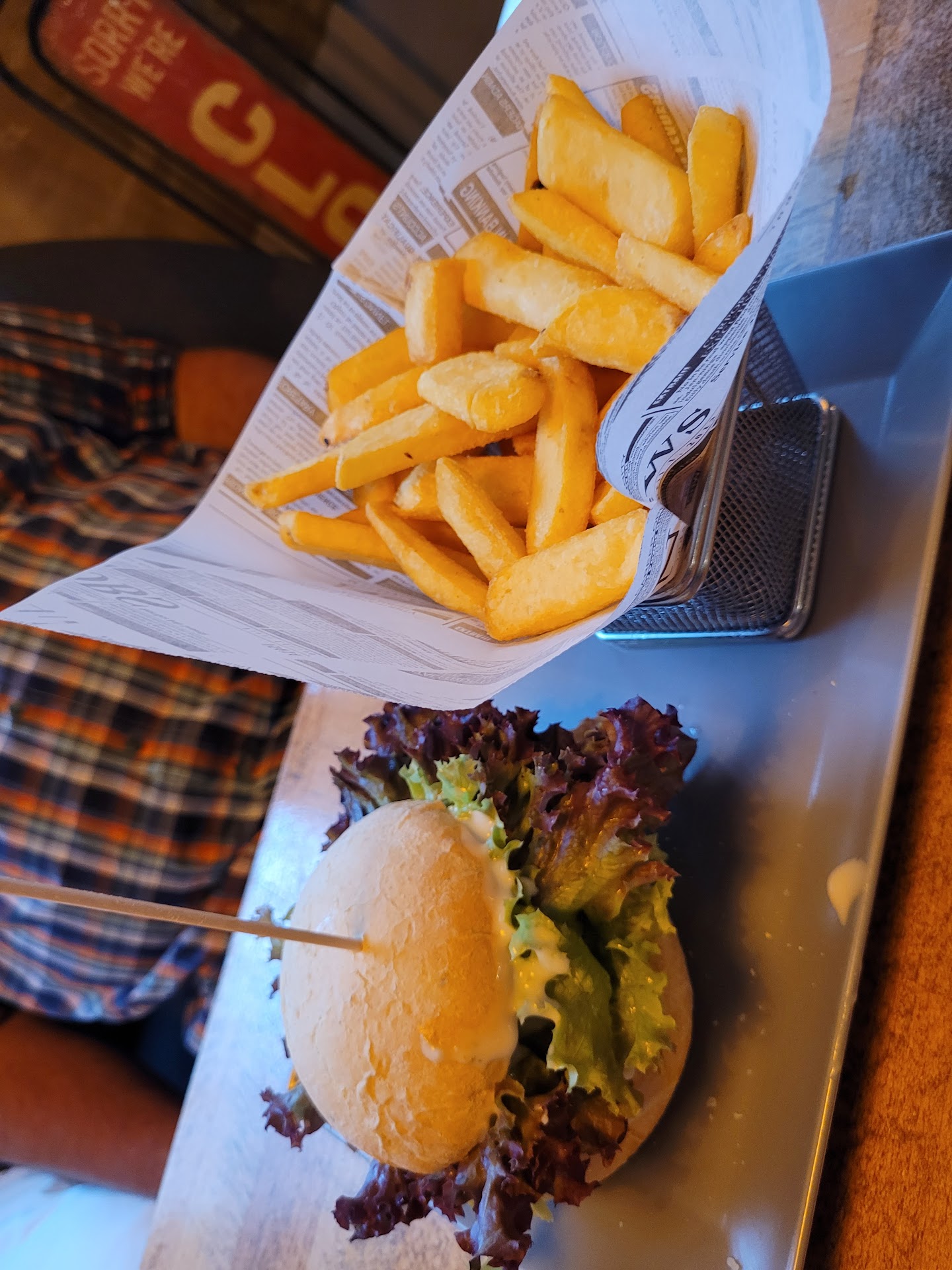 Das Essen. Ja, was soll ich sagen... Das Team in der Küche mag sich bemühen, jedoch hat man unseren Geschmack hier auf ganzer Linie verfehlt. Das Patty auf dem Burger muss so "nichtlecker" gewesen sein, dass meine Frau erst den ganzen Burger nicht Essen wollte, weil sie nicht wusste, was dort so gar nicht lecker war. Als sie dann herausfand, was es war, konnte sie wenigstens den Rest aufessen. Der Grundgedanke für den Burger ist mega gut. Vielleicht einmal den Patty-Lieferanten wechseln... Der Ziegenkäse soll vor ein paar Tagen fast doppelt so groß gewesen sein. Und zur Currywurst mit Pommes kann ich nur sagen... Pommes fade und Currywurst war eine Krakauerähnliche Wurst. Wenn ich Currywurst bestelle, und nichts anderes in der Karte steht, dann habe ich Hunger auf eine Rostbratwurst, nicht auf eine Krakauer...
