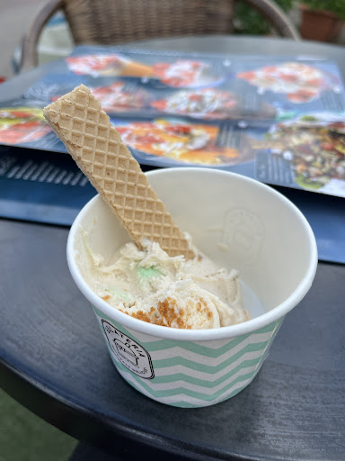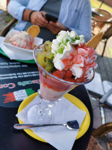 Read moreGanz arg schlecht gewesen. Malagabecher bestellt, gab es nicht, Amarenabecher bestellt, gab es nicht. Spaghettieis bestellt...das war super. Der zweite Becher sollte ein Minzbecher sein, kam dann erst auf unsere Nachfrage, jedoch als vollkommener falscher Becher und mit Kiwisosse...war halt auch grün :-) Dann das Ganze zum Schluss komplett falsch abgerechnet. Bedienung komplett fehl am Platze und der zweite junge Herr hinter der Theke war sicherlich noch nicht einmal 16 und sprach kaum deutsch. Total enttäuscht worden heute! Ach ja, die zwei After Eight Täfelchen steckten mit Papier im...