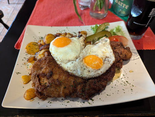 Daher sind wir also hier eingekehrt. Der Service war sehr freundlich , allerdings hatten wir beim Essen irgendwie nicht wirklich Glück . Optisch waren alle Speisen okay . Geschmacklich leider nur die Hälfte . Die Bratkartoffeln und auch die Pommes waren sehr fettig , die Sülze ziemlich geschmacksneutral, der Burger ebenfalls geschmacklich ziemlich fad und auch er war sehr fettig . Okay waren die Salate und die mit Camembert überbackenen Schnitzel. Das bringen der Getränke dauerte teilweise schon ziemlich lang und auch das warten auf die Rechnung dauerte fast 20 Minuten . .