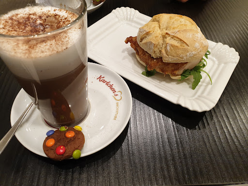 Read moreEs war heute sehr voll, trotzdem war die Bedienung sehr freundlich. Kaffee, moccachino sowie Brötchen und Kuchen waren allesamt sehr lecker. Für mich ist der Kaffee etwas zu stark aber da scheiden sich die Geschmäcker. Leider kommt das Tische reinigen bei so viel Andrang etwas zu kurz aber da machen wir keinem einen Vorwurf. Alles in allem kann man sagen, um einen schönen Moment zu verweilen reicht es vollkommen aus. Nur ruhig ist es nicht aber das kann man an einem Samstag Mittag nicht...