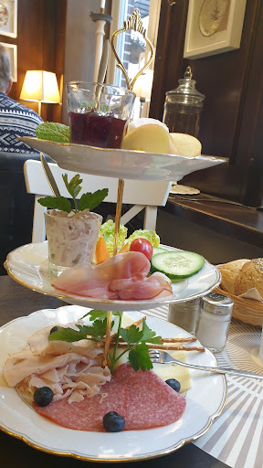 Eigentlich ein schönes Café in schönem Ambiente.... wenn ich allerdings schon den Anspruch für mich habe, die Gäste zu platzieren und mit klassischem Ambiente und schöner Klassikmusik zu überzeugen, dann sollte es auch qualitativ stimmen. Wer schon beim Eintritt empfangen wird wie ein Eindringling, mit einem sofort Unwohlgefühl... Sehr gut war der Kaffee, ansonsten gibt es ein paar Kleinigkeiten, die geändert werden können! Die Brötchen waren nicht aufgeschnitten und es gab auch kein Brötchenmesser dazu. Mühselig. Das ist eine Kleinigkeit, die ganz viel Service ausmacht. Der Aufschnitt war eher durchschnittlich und nichts besonderes, Scheibenkäse aus der Packung, Fleischsalat aus der Packung, Salami aus der Packung. Brötchenkorb alt und abgegriffen und mit einer alten Serviette am Grund. Hier wäre z.B ein Spitzendeckchen schön, passend zum Atmosphäre. Wenn schon Ambiente, dann wäre es schön, Ambiente würde vollständig stattfinden. Ein kleines Plätzchen zum Kaffee am Tassenrand. Es war ein großes Frühstück für 16,50 €, das ist schon viel Geld, dafür fand ich es soweit okay, ausreichend, aber nicht sehr gut. Wie gesagt, der Kaffee war sehr lecker, Latte Macchiato, und die Brötchen waren auch sehr gut, aber schwer mit normalem Messer zu schneiden. Ambiente schön, der Rest von mir nur 3 Sterne. Hier ist mit wenig...