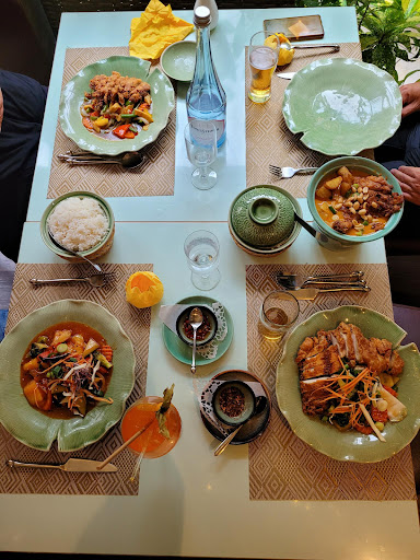 Ich gebe zu es ist mein erster Besuch in einem thailändischen Restaurant, aber ich bin Schock-verliebt. Das Mai Thai ist ein von echten Landsleuten geführter Familienbetrieb der von den Frauen der Familie geführt wird. Viele tolle Details haben mich begeistert, das Geschirr das aus der Heimat importiert wurde und auch die Kunst an der Wand einer befreundeten Malerin, grossartig. Das Bella Donna Haus rundet in Summe diese starke Frauenpower ab. Nun aber zum Essen, wir waren mit einer größeren Gruppe dort und konnten so vieles durcheinander probieren. Ein gemischter Vorspeisenteller hat es einfacher gemacht, wir hatten dazu noch einen Papaya Salat und Lab aus Hühnchen Hack, extrem interessante Geschmäcker haben sich aufgetan durch den Einsatz von Koriander und Lemongras was man so gar nicht oft in europäischer Küche hat. Als Vorsuppe hatte ich dann eine Kokossuppe, das war der gelungene Übergang von etwas scharf zurück zur Milde. Mit besonders viel Kokosmilch kam der Geschmack grossartig rüber. Dann habe ich mich an etwas herangetraut, ich bin ja eher krüsch.... Hühnchen in Pandanussblätter (hoffe der Name ist korrekt) das Fleisch wird in den Blättern eingewickelt und dann frittiert. Es war so herrlich saftig. Meine Hauptspeise war eine knusprig gebackene Ente auf Gemüse. Das hat mir so sehr gefallen diese Variante war eher pikant, und es wurde mehr als ausreichend Reis dazu gereicht. Der Nachtisch wurde mit einer Kugel Kokoseis und einem Prosecco mit Himbeeren abgerundet,Leute ich sag euch das war das beste Restaurant Erlebnis in den letzten Jahren für mich überhaupt und wir probieren gerne aus. Um einen Tisch zu ergattern, alte man sich eine Woche vorher locker im Mai Thai melden es ist nicht riesig groß und gut besucht. Alle Daumen hoch! Ich...