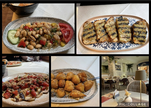 Als Vorspeise hatten wir den Dicke-Bohnen Salat und das Knoblauchbrot. Beides war sehr lecker und ist sehr empfehlenswert. Zum Hauptgang haben wir beide die gegrillte Aubergine genommen, die ein Gedicht war. Nicht nur optisch ein Highlight, aber auch geschmacklich einfach fantastisch. Was uns sehr positiv überrascht hat war die Nachspeise, das Schmalzgebäck, welches einfach mal vegan ist. Der Nachtisch kam noch heiß am Tisch an und duftete unfassbar gut. Geschmacklich war der Teig fluffig und nicht zu süß. Einfach nur lecker.