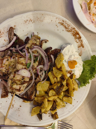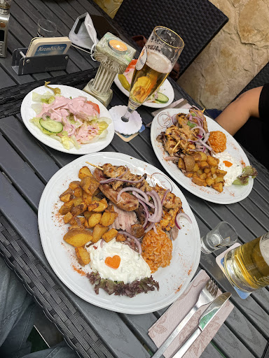 Read moreEtwas übrrdekorierter Grieche mit grundsätzlich gutem Gyros und griechischen, krossen schmackhaften Kartoffeln. Lammkotlett bei der gemischten Platte miniklein, Salat kurios gewürzt mit rosa-lila Sauce. Knoblauchbrot ( Toast?!) triefte vor Fett, wie ich es noch nie erlebt habe. Portionen okay. Den Salat gibt es zur Hauptspeise dazu. Allerdings mit Strunk bzw. Salatkompakt dafür 1 Scheibe Tomate und 1 Scheibe Gurke. Preis Leistungsverhältnis gerade noch okay. Die überwiegend guten Bewertungen von 4 oder gar 5 Sternen kann ich allerdings nicht nachvollziehen. 5 Sterne sollte eine Rezension eines tadellos erstklassiges Restaurants sein, in allen Punkten überragend, was hier nicht der Fall ist. Speisen zum Teil überwürzt, was allerdings in vielen mittelklasse Restaurants der Fall ist...bringt mehr Getränkeverkauf. Toiletten merkwürdig überspitzt mit Reiniger in grün. Ambiente okay. Raucherbereich separat. Ungünstig wirkt es, wenn man reinkommt und der erste Blick durch den Tresen Bereich in die Küche erfolgt, in deren offenen Tür 2 Damen sitzen und über ihre Handys gebeugt sind. Erst auf den 2. Blick realisiert man, dass diese wohl nicht für den Service zuständig sind und das eine andere Dame macht, die dann aber sehr freundlich war. Ouzo gibt es direkt zum 1. Getränk. Ich kenne das...