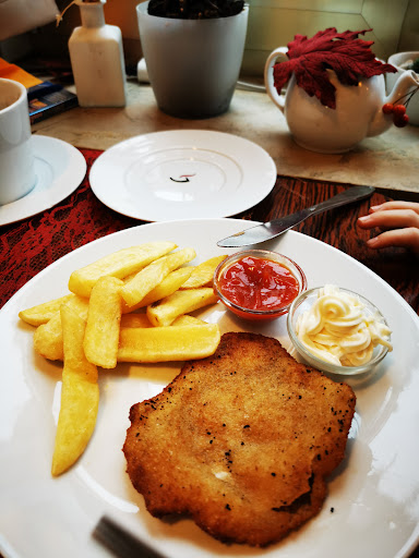 Es ist entweder Café oder Restaurant dank des eigenen Kuchens, aber auch ein guter Bäcker. Es ist nicht aufgeregt. Kein Taubenschlag. Das Sitzen ist nicht zu eng.