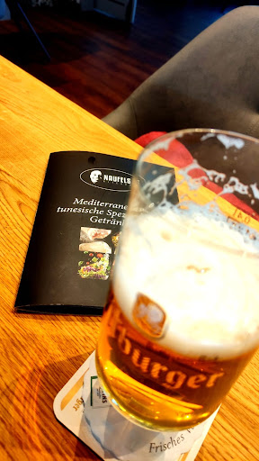 Vorab: Ich kann mich nicht erinnern, während all unserer Reisen und all unseren Restaurantbesuchen, solch eine Gastfreundschaft erfahren zu haben. Wir sind Reisende und übernachten direkt neben diesem Lokal auf dem Wohnmobilstellplatz. Naufels Kitchen. Deshalb entschieden wir uns hier zu essen. Aber, genau an diesem Tag nicht möglich, weil sie für eine Hochzeit herrichten mussten. Trotzdem nahm der Chef sich für uns Zeit und gab uns beiden ein Pils aufs Haus. Reserviert für tags darauf. Nun. Zweiter Versuch. Das kleine Lokal war voll. Die Servicekraft überfordert. Das war noch niemals ein Problem für uns. Im Gegenteil, wenn wir essen gehen, möchten wir es zelebrieren. Zeit mitbringen. Es muss nicht Schlag auf Schlag gehen. Wir hatten als Vorspeise den tunesischen Mix-Teller für zwei. Fantastisch. Danach noch eine Pizza. Was soll ich sagen. Könnte jeder Italiener so eine Pizza machen, das wäre grandios. Diese Pizza war Weltklasse. Das Beste aber. Beim Bezahlen kam der Chef an den Tisch, hatte eine Pizza im Karton dabei und schenkte sie uns. Sie wäre wohl am Rand etwas dunkel geworden. So etwas ist uns noch nie passiert. Danke. Danke für das unvergleichlich gute Essen. Danke für die Gastfreundschaft. Zum Verständnis. Es handelt sich hier um eine Gaststätte im Tennisverein. So ist das ganze auch zu verstehen. Das Essen aber wie bei einem...