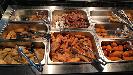 The buffet was somewhat bland and all the dishes had a film of thickened sauce on them.