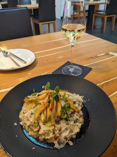 Sehr schön gelegen, ein Hingucker. Tolles Ambiente. Sehr schön angerichtetes Essen, dass auch sehr gut schmeckt. Neben normal auch mit asiatischen oder mediterranen Touch, wenn ich mir die Speisekarte so anschaue. In Summe ein wunderbares modernes Konzept, dass aber nicht abgehoben ist und auch bei Normalos ankommt.