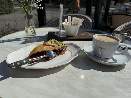 Read moreUnvergessliche Momente . Hat alles mit wunderbaren Frühstück sonntags vor 3 Wochen begonnen .Hier wird nur mit frischen , Zutaten gearbeitet. Kräuter in vielen Gerichten und sogar in meine Lieblings Marmelade Ananas🍍mit Rosmarin und Zimt . Kleine Rosinen Schnecken noch warm 😋. Gluten frei frisch gebackene Brötchen die Wunder schön duften . Alles sehr einladend dekoriert . Hier schmeckt einfach alles . Nachmittags natürlich gibt’s hier den besten Kuchen in der Stadt . Eierlikör/Kirsch Torte , Tartes mit Marzipan und Kirchen.Alle Kuchen selbst gebacken .Jede Kuchen Liebhaber findet hier was für sich . Herzhafte Gerichte habe hier auch gegessen . Kürbis Suppe mit frischen Ingwer und Kokosmilch. Fabelhaft abgeschmeckt . Viele verschiedene Flammkuchen , Raclette probiert Donnerstag Abend . Rindfleisch und Ente waren sehr gut mit Gewürzen marieniert . Wenn du Ahnung hast von kochen zergeht dir hier alles auf der Zunge. Wehrend meinen 4 wöchigen Aufenthalt in Bad Rothenfelde ist COEUR’chen ❣️zum meinen Lieblings Ort geworden. Sehr bequeme Stühle zum sitzen . Blick direkt auf das Gradierwerk . Hier kann ich meine Seele baumen lassen . Donnerstag bis...
