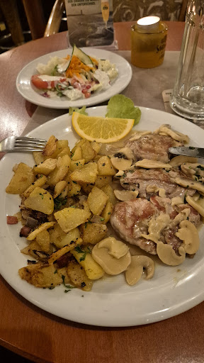 Read moreDieses Restaurant ist alt, aber im negativen Sinne. Teppichboden, Bestuhlung und sonstige Einrichtung muffig. Alleine die draußen angebrachte Speisekarte: fleckig, fledderig und nicht einladend. Überhaupt steht die Auswahl der Gerichte für die 70er/80er Jahre. Ein Champignon-Schnitzel mit Dosenpilze in einer undefinierbaren Pampe. Gestern Abend haben allein zwei Gäste nach frischen Champignons gefragt. Fehlanzeige! Ganz klar: der Service ist sehr freundlich und aufmerksam! Aber ansonsten ist dieses Restaurant unangenehm in den 70ern stecken geblieben. Die Preise sind dagegen selbst für heutige Verhältnisse ziemlich happig und nicht gerechtfertigt. Es gibt keinen Grund für eine...