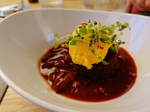 Read moreEine angenehme Überraschung in der sonst so kulinarischen Einöde von Bad Rotenfelde. Die Kritiken waren gut und daher haben wir online einen Tisch reserviert. Der Zugang zum Restaurant über eine Passage aus den 90er Jahren ist nicht gerade ein optisches Highlight und die Nutzung des Fahrstuhls (die Gehhilfen wollten das so) ist eine Herausforderung an das eigene Sauberkeitsempfinden (schmuddelige Aufzugtasten, -wände und -boden). Die Einrichtung des Restaurants wirkt etwas Laminat-Hölzern aber durchaus in Ordnung. Die Begrüßung und der Service war sehr freundlich, aufmerksam und zuvorkommend. Um die Wartezeit auf das Essen zu verkürzen gab es aus der Küche „kleine Grüße“ in Form von Zwiebelbrot mit Sauerkraut-Schmand (beim nächsten Mal bitte ohne Speck, dann kann auch ein Vegetarier in den Genuß kommen!) und frittierten Blumenkohl auf scharfer Mayonnaise - beides sehr, sehr lecker. Das Hauptgericht (Pfifferlinge mit Rösti und Schnitzel, für den Fleischesser) war handwerklich perfekt! Das Schnitzel hauchdünn und wunderbar kross ausgebacken, wie es sein soll. Das Risotto mit Zander (für die Pescetarierin in unserer langjährigen Ehe) war absolut lecker und so geschmackvoll gewürzt, daß jede „Nachhilfe“ überflüssig war. Das ganze wurde auf gut vorgewärmten Tellern serviert - dafür ein Extra-Danke! Ein unmotivierter Koch kann auch bei bürgerlichen Gerichten viel falsch machen. Einen guten Koch erkennt man daran, daß (vermeintlich) einfache Gerichte perfekt zubereitet werden - und das war hier absolut der Fall. Das Team ist gut aufeinander eingespielt und aufmerksam. Alles in allem eine sehr angenehme kulinarische Überraschung. Zwei Sterne Abzug gab es für die Sauberkeit beim Zugang zum Restaurant über den Aufzug. Das Restaurant selbst (und besonders die Toiletten) waren Picobello und ohne jede Beanstandung. Es war insgesamt so gut, daß wir gerne wiederkommen....