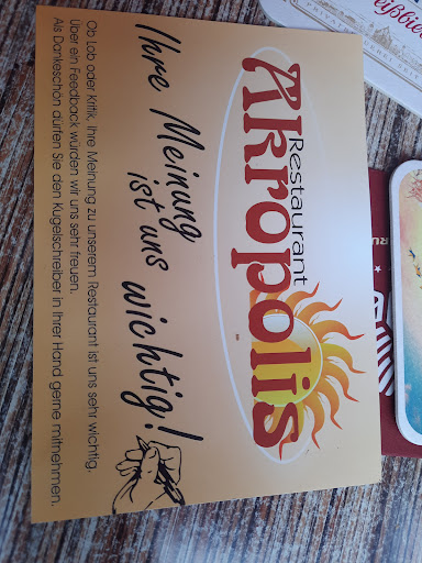 Wir waren auf Empfehlung bei Akropolis essen, leider zum ersten und auch letzten Mal. Nach Bestellung haben wir bereits 15min gesessen und dann 80min auf das Essen gewartet. Das habe ich noch nirgends erlebt. Die Bedienung war zu Dritt, freundlich, allerdings ohne Struktur, denn alle 3 haben auch unseren Tisch bedient. Das Essen war leider nicht genießbar und wir waren zu Acht, d.h. Subjektivität kann ausgeschlossen werden. Gern auch ein Beispiel: die Sorbas Platte für 2 Personen zum Preis von 33,90€ war zum Einen von der Menge so groß, wie bei Athos in Thiedenwiese der Grill Teller, zum Anderen war das Mett total versalzen und ungenießbar, dafür die Steaks ohne Geschmack. Das Suflaki nicht zart, sondern sehnig und trocken gebraten. Das Giros (kleine Portion) im Biss eher kautschukartig und ebenfalls ohne Geschmack.... Katastrophe wenn man Hunger hat und die Gesellschaft hinterher noch am Imbiss halten musste....Positiv waren die Salatbar, die Pommes und das wars. Alle Teller gingen halbvoll wieder zurück und der Kellner fragte erst gar nicht, ob es geschmeckt hat, war im wohl auch peinlich!...