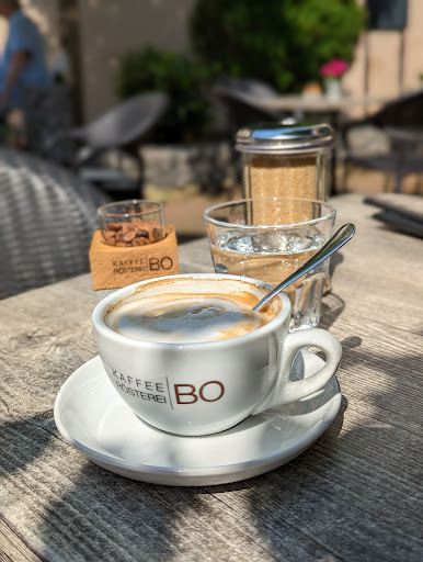 Read moreSehr , sehr leckeren Milchkaffee getrunken , nettes freundliches Personal . Kleines gemütliches Cafe , wo auch kleine Gesellschaften Platz finden . Den selbst gerösteten Kaffee nimmt man frisch gemahlen mit nach Hause . Empfehlen kann ich den sehr leckeren Kaffeelikör auf Grappabasis , der für die Bo Kaffeerösterei speziell destilliert wird . Besuche das Lokal gerne wieder . Einen Wermutstropfen gibt es allerdings , nämlich den " Hot Aperol " , an dem Rezept ( Geschmack , als Basis ist ein weißer Glühwein super , der bringt schon viel Geschmack mit ) und der Präsentation muss noch einmal gearbeitet werden . Vielleicht dekoriert man ihn z . B . mit 1 Zimtstange , 1 Sternanis , Orangenscheibe , kommt besser an . Wer auf alt und etwas antik steht , ist hier gut aufgehoben . In dem Cafe hängt ein wunderschöner , riesengroßer Kronleuchter, ...