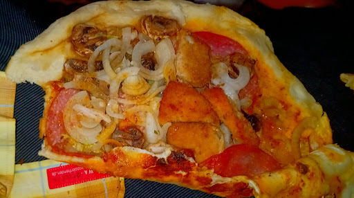 siehe das Bild einer geöffneten großen SchnitzelCallzone für 12€.. Da fehlen mir die Worte.. fairer Weise muss ich sagen das ich 2 so kleine Schnitzel Eckchen anfangs beim aufschneiden gegessen hab. Aber im großen und ganzen ist da mehr Zwiebeln als Schnitzel drinnen..