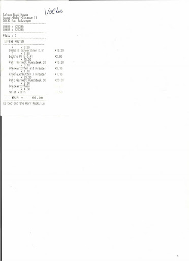 Hier nun der Scann DEINER Rechnung als JPEG-File. Und ja, ICH hätte die Rechnung auch nicht bezahlt - für diesen Müll wie Du gesagt hast. Aber ich war ja nicht alleine und die Gruppendynamik hat eben gesagt - wir machen hier keinen Ärger, ja, das Essen ist mies, es ist sogar viel MIESER als es sonst war - aber wir bezahlen. Doch gerne nehme ich Dein Angebot an, wenn ich es denn so verstehen darf, dass Du mir die Rechnung - also natürlich die gesamte - erstattest. Gerne gebe ich Dir meine Bankverbindung.