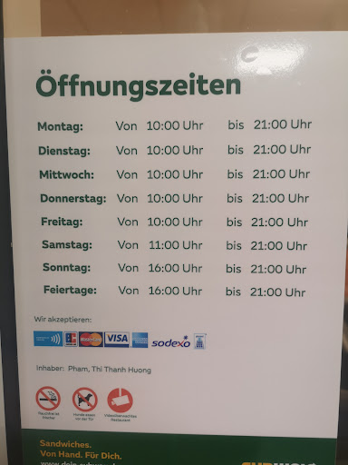Wir waren spontan bei Subway , der Mitarbeiter der uns bedient hat war in normaler Alltagskleidung keine Spur von Arbeitskleidung und dazu noch in beiden Ohren in-ear kopfhörer. Beim ersten Versuch zu bestellen hat uns dieser Mitarbeiter nicht mal zugehört , er hat lieber mit seiner Kollegin gesprochen, obwohl wir gefragt würden sind was wir möchten. Er belegte unsere Brote sehr lustlos und war anscheinend genervt das mein Patenkind nicht so recht wusste was er möchte , und legt ihm einfach Salami aufs Brot , was aber dann okay war.