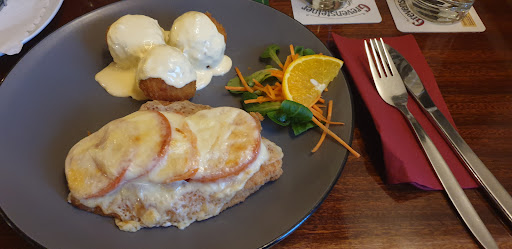Um ehrlich zu sein, kann ich persönlich den ganzen positiven Rezensionen hier nicht zustimmen. Dies ist meine eigene Meinung und Erfahrung: Wir waren kürzlich spontan dort zu Viert essen. Das Restaurant an sich war unten komplett ausgebucht, weswegen wir hoch mussten. An sich eine nette Location, aber von unten her war es doch ziemlich laut, sodass man oben ab und zu sich nicht wirklich unterhalten konnte. Das Essen, was ich ich gerne bestellen wollte, gab es nicht - laut Kellnerin gab es dieses nur an einem Tag im Jahr "so, wie die meisten fotografierten schönen Bilder bei Google". Diese Aussage machte mich schon stutzig. Aber okay. Schnitzel waren sehr teuer, da wir nicht am Schnitzeltag da waren. Für extra Sauce sollte man bis zu 4,50 Euro extra zahlen (steht auch explizit in der Karte!). Wollte man statt Pommes z.b. Bratkartoffeln zahlt man für die Umbestellung 2,50 Euro. Möchte man einen kleinen Salat dazu, zahlt man auch direkt nochmal 4,50 Euro extra. Dies ist schon unverschämt frech, für das, dass es "nur" Schweineschnitzel" sind. So kommt man locker auf über 20 Euro für ein Schnitzel! Die Sülze war zu kümmellastig, die Bratkartoffeln dazu keine Bratkartoffeln, da matschig. Und die Remoulade war eindeutig aus dem Eimer. Einzig, der nette Kellner, der eigentlich bei der Post arbeitet hat einen Stern verdient, da er sehr freundlich und...