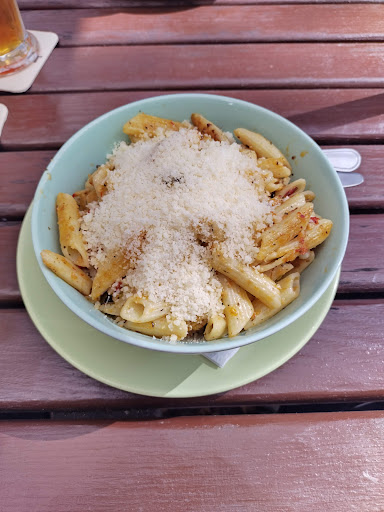Zum Personal: Ich habe mich die ganze Zeit gefragt, woher der Kellner die Kraft und Freundlichkeit hernimmt, mit der er uns bedient hat. Es war richtig voll zur Mittagszeit und er hatte echt zu tun. Trotzdem kamen die bestellten GetrĂ€nke umgehend und auch das Essen lies nicht lange auf sich warten. Selbst eine GetrĂ€nkenachbestellung "auf Zuruf" war ĂŒberhaupt kein Problem.