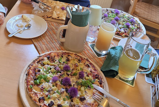 Read moreWir waren heute dort Essen und sind dank der vielen Bilder bei Google (Maps) von einer reichhaltigeren Speisekarte ausgegangen. Aktuell gibt es dort Flammkuchen und Pizza. Die beiden Pizzen, die wir gegessen haben, waren super, keine Frage! Auch gibt es dort Pizzen, die es woanders nicht gibt. Zum Beispiel war bei meiner "Herren Pizza" Blutwurst drauf. Das klingt im ersten Moment vielleicht nicht bombastisch, war aber sehr lecker. Trotzdem geht man aufgrund der Bilder bei Google (Maps) davon aus, dass es dort unter anderem Schnitzel und Forelle gibt, was nicht der Fall ist. Auch für unser kleines Kind (1 Jahr alt) war dementsprechend nichts dabei. Das ändert sich sicherlich, wenn die Kinder etwas älter sind. Zur gleichen Zeit waren andere Gäste vor Ort, bei dem sich die Kinder eine Margarita Pizza teilen wollten. Ich empfehle dem Betreibern, die unzutreffenden Bilder mit Speisen, die es dort nicht mehr gibt, bei Google (Maps) entfernen zu lassen. Dann wüsste man, worauf man sich einlässt. Wobei auf der Webseite richtigerweise auf die Speisekarte mit Flammkuchen und Pizza hingewiesen wird. Es ist jedoch fraglich, ob jemand, der sich bei Google (Maps) inspirieren lässt, tatsächlich auf die Homepage geht und sich vergewissert, dass die Speisekarte noch...