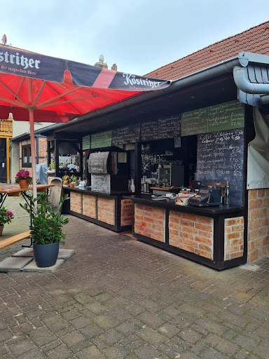 Von außen ist die Pfeffermühle in Bad Schmiedeberg ein recht unscheinbares Ding, kommt man aber zu Freiluftzeiten in den Innenhof sieht das schon ganz anders aus. Eine große offene Küche, und eine rustikale Bestuhlung passen gut zusammen.