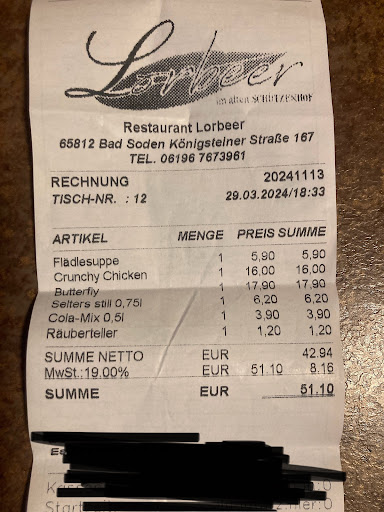 Read moreWir waren das erste Mal in dem Restaurant. Leider wurden unsere Erwartungen nicht ganz erfüllt. Das Essen war Durchschnittlich. Als Hauptgericht hatten wir Nudeln mit Lachs und einen Chickenburger. Die Nudeln waren geschmacklich gut, der Burger war leider enttäuschend. Das Brot war nicht richtig geröstet und die weiteren Zutaten findet man zuhause in der Küche auch. Hätten wir so auch hinbekommen. Für unsere Tochter hatten wir den „Räuberteller“ bestellt. Einen leeren Teller, da sie von unserem Essen etwas bekam. Als es ans bezahlen ging, wurden wir vier mal gefragt, wer was an Getränken hatten. Die Rechnung wurde getrennt bezahlt, da wir noch mit einem anderen Pärchen zusammen da waren. Trotz der 4 maligne Nachfrage, kam die Rechnung falsch. Nachdem das geklärt war, wurden wir gefragt, wie wir bezahlen wollen. Auch das wurde vorher 3 mal gesagt. Nun ja, auf der Rechnung stand dann der Räuberteller mit 1,20€. Große Verwunderung, da es ein leerer Teller war. Kinderbesteck war nicht dabei. Die Kuchengabel haben wir uns dann an der Theke geholt. Auf Nachfrage wieso ein leerer Teller so abgerechnet wird, kam nur: der Chef macht die Preise. Okay, kann man so machen, aber so bekommt man sicherlich keine neuen Stammgäste. Service wirkte oft...