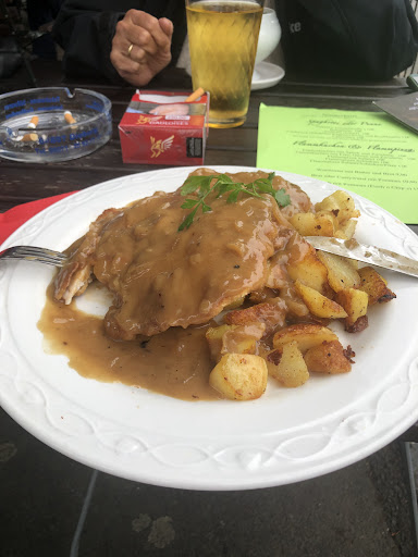 Einfache Gerichte vom Typ, deutsche gutbürgerliche Küche, aber ausgezeichnet zubereitet. Die Schnitzel (2 auf dem Teller) waren sehr zart mit knuspriger Panade und leckere Pommes. Auch den anderen hat es geschmeckt, einmal war es Spargel. Wirklich tolles Preis-Leistungsverhältnis, hier wird ein erwachsener Mann satt.