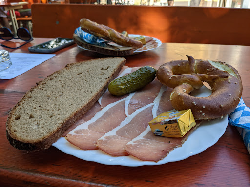 Durch Zufall entdeckt... aber begeistert! Der urige Schankraum nebst Theke, über der die beleuchtete, in Schmiedeeisen gefasste Werbung leuchtete, brachte Kindheitserinnerungen zurück! Wir waren an einem Sonntag gegen 11.30 da-- und waren überrascht,das es komplett voll war! Da saßen Stammgäste bei Kartenspiel und Frühschoppen,Besucher und Touristen, Kirchgänger...alt und jung! Die freundliche Bedienung erklärte uns die verschiedenen Biersorten und wir entschieden uns für ein Pils und ein Lager!Beides kam frisch gezapft nach wenigen Minuten auf den Tisch...süffig,lecker ... schmeckte nach Mehr! Leider mußten wir zu schnell weiter,aber ein weiterer Besuch im Sommer ist angedacht,damit wir auch noch den Biergarten und die Speisekarte ausführlich testen können! Toll auch ---das Bier to go,als Mitbringsel oder für den Hausgebrauch! Von der Flasche bis zum Fässchen ist alles dabei und eine Abholung direkt an der Rampe ist auch möglich! Wir waren begeistert und für das zusätzliche Erlebnis " zurück in die Kindheit" gibts alles in allem 5 Sterne! Absolut...