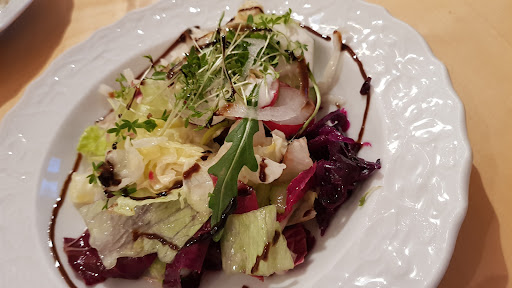 Die Salate vorab waren frisch und knackig mit leckerem Dressing, und die Hauptgerichte waren alle wirklich sehr zu empfehlen, das Cordon Bleu war groß, saftig und gut gefüllt, die Pommes gut gesalzen und knusprig. Die Ochsenbrust war wunderbar zart und die Soße gut scharf, so wie ich es mag!!!! .......Leider gibt es hier einen kleinen Kritikpunkt, es wurde mit "Balsamico Topping" der Teller verziert, über die Soße und das Fleisch!!, das passt geschmacklich NULL zum Meerrettich und zur Ochsenbrust!! Hier empfehle ich sich aufs Wesentliche zu konzentrieren und es nicht zu übertreiben.