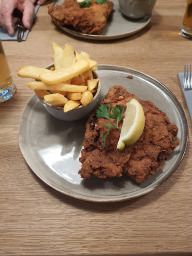 Read moreDie Auswahl an Gerichten ist nicht viel, doch für jeden was dabei. Bei den ein oder andern Gericht finde ich den Preis etwas zu hoch . Ich persönlich war das erste mal hier u hab den Klassiker gewählt. Schnitzel pariert mit eigentlich Kartoffelsalat doch den hab ich weggelassen u bestellte einen größeren Beilagen Salat. Kartoffelsalat konnte ich von meinen Partnern probieren. Der war selbst zubereitet mit gurken u schinkenspeck, mir persönlich hat er nach zu viel Zucker geschmeckt. Mein Schnitzel war sehr dünn geklopft u ziemlich cross gebraten , also die Panade war mir etwas zu knusprig (Vllt etwas mehr fett in die Pfanne) . Fünf Minuten eher aus der Pfanne u es wäre nicht so dunkel bzw fast schwarz . Der Salat, die Blätter waren frisch schöner bunter Salat mit paar gurken Scheiben u gelben hauchdünnen Karotten Scheiben. Könnt ich fast nicht meggern ,...bis auf das das Dressing wieder sehr süß war . Das Cordonbleu von meinem Partner u das Schnitzel von meiner Tochter waren nicht so cross ,die waren richtig gut gebraten. Meine Mutter hatte nen Salat mit Hähnchen, das war ne große Portion. U.a waren angebraten Pilze mit im Salat, diese waren seeehr dunkel bis hin zu schwarz gebraten, leider . Das Personal das noch sehr jung ist , ist bemüht alles gut u recht zu machen da gibt es nichts zu meggern. ....im großen und ganzen ich würde ihnen eine zweite Chance geben und noch...