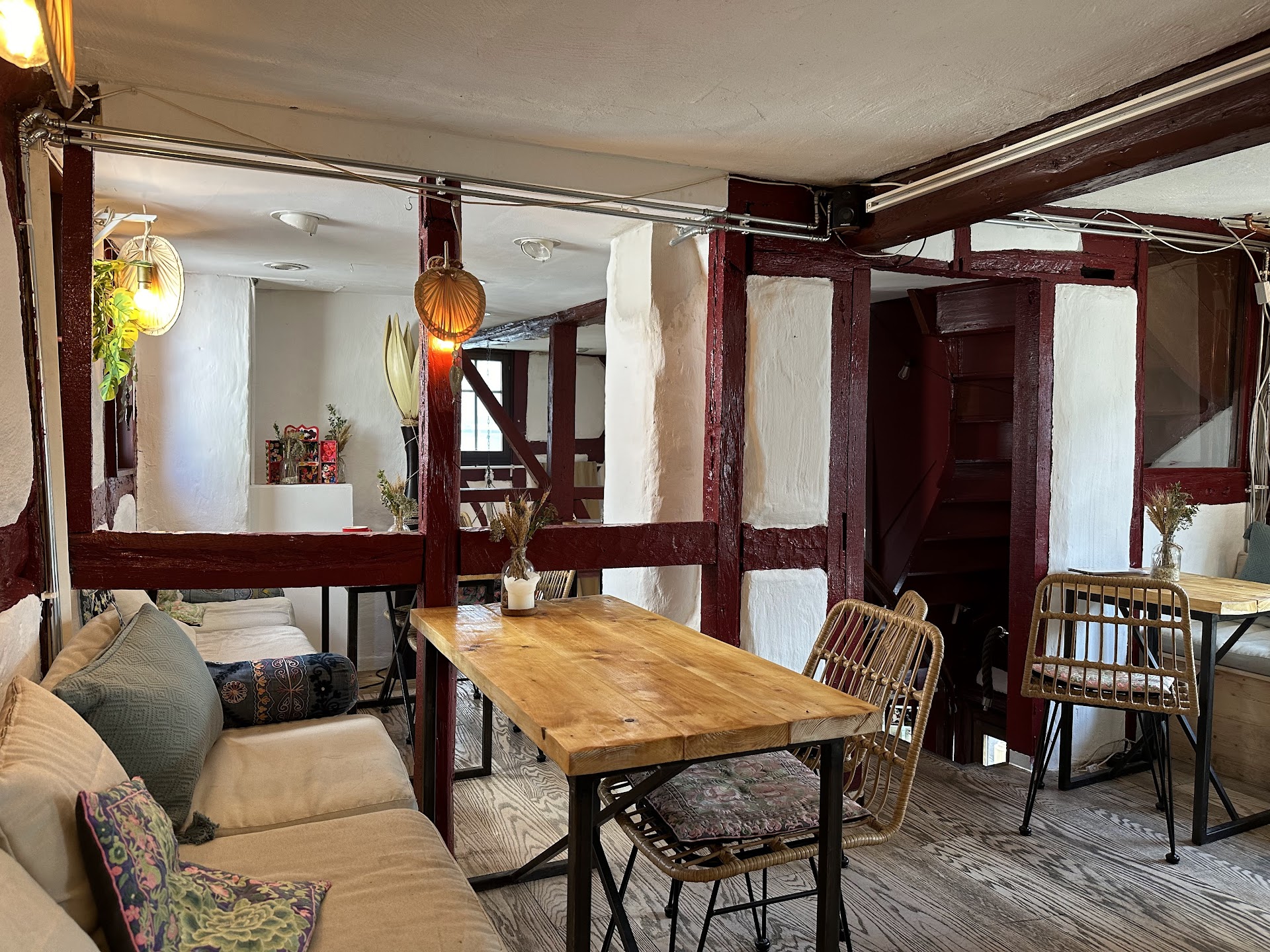Read moreEndlich mal wieder ein richtig gutes Lokal in Bad Vilbel und auch noch Vegan!! SUPER. Einige kennen den Laden bereits aus Bad Homburg, allerdings gefällt dieser in Bad Vilbel mir wesentlich besser. Er ist in einem Fachwerkhaus und einfach nur einladend eingerichtet. Man kann hier auch sehr schön im Hof sitzen. Es gibt allerhand leckere Speisen, Kuchen, Waffeln, Getränke Kaffee, alles was das Herz begehrt, mein absoluter Favorit ist die Gurkenlimo, hmmm da kann ich net genug von bekomme. Sonntags gibt es einen Brunch, da gibt es mehrere warme Speisen, Salate, Brötchen, Kuchen, Aufschnitt, Waffeln,..... Geschmacklich absolut empfehlenswert, preise sind ok. Das Personal, ja das ist so ein bisschen ein Problem... Bisher hatte ich nur freundliche und Aufmerksame Mitarbeiter, allerdings war meine Frau auch schon hier und da war es leider das komplette Gegenteil. Da ich nicht auf den Mund gefallen bin, habe ich das gleich mal dem Gian (Besitzer) erzählt, er meinte das er momentan noch einige neue Service-kräfte ausprobiere und eben oft Studentinnen und Schülerinnen einstellt, da sind einige leider noch nicht so fit. Vielleicht hier mal ein wenig nachsichtig sein und wenn was eben nicht passt, reingehen und sagen. Nur wer etwas SAGT, kann auch etwas verändern. Veganer sollten das kennen.. ;) Ansonsten kann ich nur sagen,...