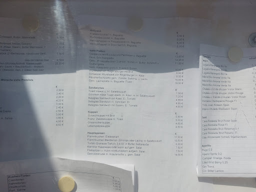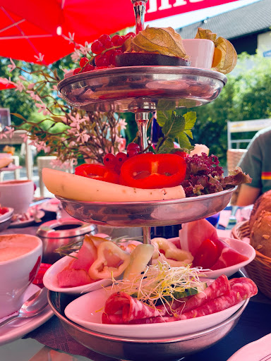Neben Frühstück, einer Auswahl verschiedener Kuchen und Torten werden hier weitere Süßspeisen bayerische Köstlichkeiten wie Weisswurst und Wurstsalat aber auch Flammkuchen und Käseteller nebst Wein angeboten.