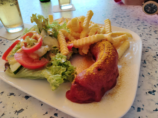 Read moreSelten habe ich einen so unfreundlichen und mürrischen Wirt/Serviceperson erlebt wie hier. Man hatte den Eindruck als Gast zu stören, vielleicht auch weil gerade eine Fußballübertragung der EM bzw. das Vorgeplänkel dazu auf der Außenleinwand lief und wir die einzigen Gäste waren. Die Überraschung war dann der frisch zubereitete und gut abgeschmeckte Schweizer Wurstsalat. Eine warme Mahlzeit hätten wir nicht gewählt und auch nicht drinnen sitzen wollen, weil es da penetrant nach altem verbrauchtem Fett roch. Die zweite Überraschung war dann, dass der Wirt sich beim Abschied tatsächlich einen...