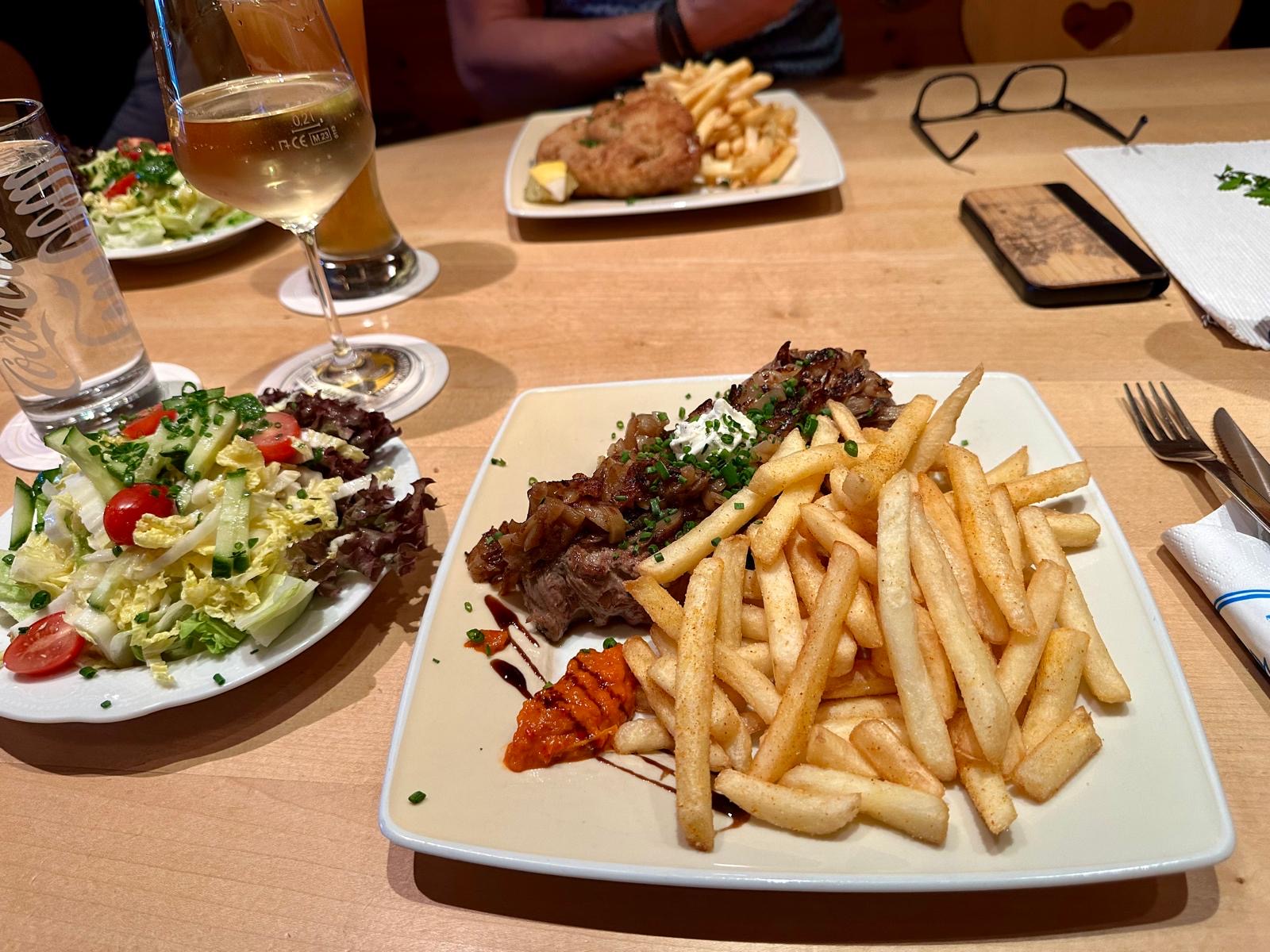 Read moreWow! I'm so glad I came back. A warm welcome as always. Manfred (Mani) is not only a great host but also a fantastic cook. I ordered a glass of wine and asked what he had to eat tonight. It usually changes daily. Well, it was a tough choice between a rump steak and tagliatelle with salmon, like the salmon was ever going to get a look in! The steak was beautifully cooked and served simply with some crusty bread, fried onions, and a knob of herb butter. It was absolutely gorgeous, just as I remembered. Who needs a fancy steak house when you've got Mani cooking. Can't wait...