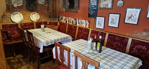 Der Laden ist eine muffige Ansammlung von altem Zeug und geschmackloser Einrichtung samt wackeligen Tischen. Die Tischdecke war verbröselt und fleckig. Essen wird nach langer Wartezeit von einer vorlauten, unfreundlichen (polnischen, russischen, slowakischen...???) Bedienung serviert die vorgibt durch ein paar italienische Worte italienisch zu sein (könnte anhand des auffällig dominanten Verhaltens auch die Wirtin sein) !! Schon allein dieses falsche Schauspiel hätte uns klar machen müssen, wie falsch die Entscheidung dort zu essen war.