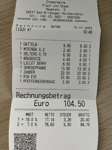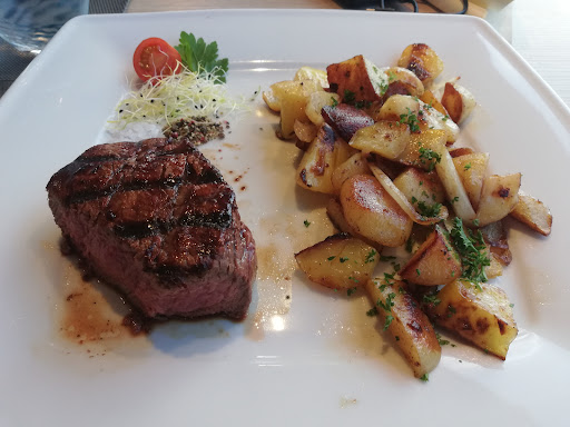 Read moreWir sind spontan am Sonntag Mittag ohne Reservierung in das Lokal gegangen und mussten nur wenige Minuten auf einen freien Platz warten. Es war sehr voll und die Service-Kräfte waren z.T. sehr gestresst. Diese Stimmung wurde auch teilweise an den Gast übertragen. Wir sind zwar geduldig und hatten auch mit Wartezeit gerechnet, aber mussten knapp eine Stunde auf die Vorspeise warten, da die Bestellung falsch aufgenommen wurde. Dies hat sich auch auf das Servieren der Hauptspeise ausgewirkt, auf die wir dann ca. 1,5 Std. gewartet haben. Andere Tische, die nach uns kamen, hatten ihr Essen dann schon längst... Das essen war dann soweit ok. Wir hatten Lachs und Zander. Preis/Leistung hat uns hier aber nicht überzeugt. Beim Bezahlen wurde uns dann auf Anfrage bzgl. der langen Wartezeit als Entschädigung ein Espresso angeboten. Da wir jedoch nicht noch länger in dem Lokal verbleiben wollten, habe ich eine Preisanpassung vorgeschlagen, auf die dann auch eingegangen wurde.