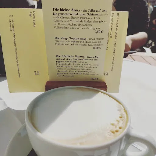 Really nice place for a coffee - we sat down in a garden part of Cafe and drank a cappuccino and Fritz limo. Besides, breakfast on the neighbor table were looking tasty and fresh. Good variety of cakes to chose from.