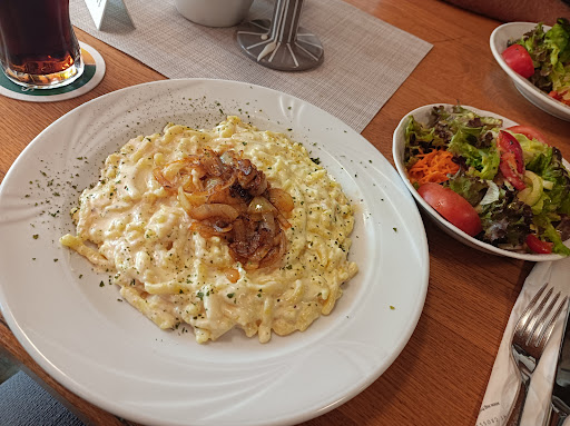 Read moreCame here with my son between lunch and dinner Time. He had a craving for spätzle so we ordered one dish and a large drink. When I asked for a second set of utensils (it was a large dish, not for kids), I was told I would be charged extra for that. 😡😡 Unbelievable, what a ride rip off in an already expensive place. Food is average,...