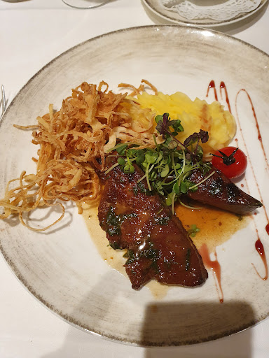 Read moreDie anfängliche Irritation durch die Azubine („Hallo, darf schon was zu trinken sein... Aperitif des Tages... hä, keine Ahnung“ - Weinkarte erst auf freundliche Nachfrage) war schnell verflogen. Exzellenter Service, sehr gute Weinauswahl und sensationell gut zubereitete Speisen haben uns voll überzeugt. Den Zwiebelrostbraten Medium Rare bestellt (damit er wenigstens Medium kommt) und tatsächlich war er Medium Rare zubereitet. Handgeschabte Spätzle, handgeschnittenes Tatar, Suppe aus der Sauciere am Tisch eingegossen, toller Gruß aus der Küche und ständig frische Brotauswahl mit frischen, sehr kreativen Broten. Im Vordergrund steht, dass sich der Gast wohl fühlt und das merkt man an jedem Detail. Mit etwas mehr Penibilität (z.B. Gläser des Aperitif nach Konsum abräumen, Brotteller und Butter mit Vorspeise wegnehmen) wäre das Sterne-Niveau. Für die Qualität der Speisen und des Service absolut akzeptables Preisniveau. Wir kommen sehr...