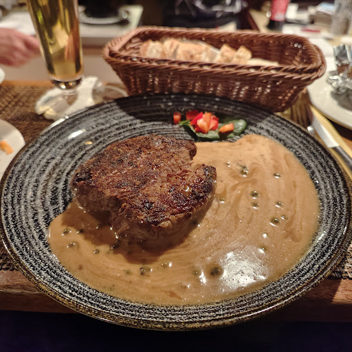 Read moreWir kommen seit Jahren immer mal wieder her, weil es das einzige "Steakhouse" in der Umgebung ist. Die Preise der Cocktails sind durchweg gerechtfertigt und werden nicht mit billigem Fusel und Lidl-Säften zubereitet, zudem schmecken sie auch sonst nirgends besser 😊 Die Steaks sind durchweg von hoher Qualität, was auch den etwas gehobeneren Preis rechtfertigt. Man sieht bei einem Steak beim Gargrad " Medium-Rare", der als Englisch angeboten wird, auch noch schön die Marmorierung, des nicht geschmolzenen Fettes im Fleisch. Zudem sind sie natürlich unheimlich zart, auch wenn es kein Filet ist. Zum Personal kann ich sagen, dass alle sehr freundlich und zuvorkommend sind, zudem gibts es am Ende eines jeden gelungenen Abends, noch einen Absacker. Der Betreiber ist ebenfalls sehr zuvorkommend und sieht in jedem Gast eine Art Freund, den er in sein Wohnzimmer eingeladen hat. Die Einrichtung ist ganz im Stil der späten 70er, was Nostalgie und einen besonderen Charme vermittelt, aber nicht abgeranzt...