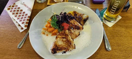 Read moreUm ehrlich zu sein weiß ich gar nicht wo ich anfangen soll ... wir waren heute (28.09.19) im Ahrenshof, die Location ist Top, Preise sind eher Highclass. Dementsprechend erwarte ich auch eine entsprechende Küche sowie Service. Wir hatten einen Tisch für 2 reserviert. Wir waren leider an einem 4er Tisch platziert worden, der in der Haupt-Laufroute zur Toilette sowie zum Tresen/ zur Küche lag. Grundsätzlich verlangt der klare Menschenverstand eigentlich dann von mir, dass ich die vom Weg abgewandt Seite des Tisches eindecke um die dort vorherrschende Situation etwas zu entschärfen. Aber genau das Gegenteil war hier der Fall. Meiner Frau wurde von Gästen die zur Toilette o.ä. wollten diverse Male gegen den Stuhl getreten. Bei der Bestellung welche wir bei einer missmutigen, komplett in schwarz gekleideten Servicekraft mit blonden Haaren und einem Dutt aufgaben, fragte ich ob ich zu dem Braten vom Welsh Black-Rind mit Kroketten und Rotweinsauce statt der Kroketten, Kartoffelknödel haben könnte. Dies verneinte sie und sagte, sie hätte nur Serviettenknödel. Daraufhin fragte ich warum nun auf der Karte aber sowohl die Serviettenknödel als auch Semmelknödel stünden? Daraufhin sagte sie, total genervt und mit den Augen rollend sowie in schnippischem Ton, das hätte sie mir doch gerade erklärt, das wäre das gleiche und sie hätte nur Serviettenknödel... Das wäre eigentlich der Punkt gewesen an dem wir hätten aufstehen und gehen sollen... ok ich bestellte o.g. essen wie es auf der Karte war mit Kroketten und meine Frau bestellte Rinderbäckchen mit Rotweinsauce auf Scharlotten-Kartoffelpüree. Als Krönung ihrer absolut unverschämten Art bat die Servicekraft mich nun ihr die Karte zu reichen und zog mir im gleichen Atemzug den löffel unter meinem soeben für den Appetizer in Benutzung gewesenem Messer vom Tisch. Nach einiger Zeit bekamen wir unser Essen wobei der Kellner das Essen meiner Frau, selbiger um ein Haar in den Schoß kippte. und mir wurde zu o.g. Gericht nun besagte Serviettenknödel gereicht anstatt der von mir bestellten Kroketten! Zum Essen... Ich hatte 3 Scheiben geschmackloses Fleisch an geschmackloser Soße dazu 5 Kroketten und geschmacklosem Gemüse für 24.20€ sowie ein normales Spezi zum Preis von 5.50€. Meine Frau hatte äusserst durchwachsene Rinderbäckchen die ebenfalls geschmacklos waren, zudem geschmackloses Gemüse sowie Soße und Charlotten-Kartoffelpüree für 17.10€. Auch sie hatte ein Spezi für 5.50€. Unser Resumée... Location top. Service absolut untauglich und für diese Art der Gastronomie nicht zu gebrauchen, (Das sind Manieren die sich selbst in einem, Restaurant einer großen amerikanischen Fastfoodkette nicht gehören.) Küche, ähnlich wie Personal unbrauchbar ! Preise eigentlich absolut in Ordnung aber für die hier vorherrschenden Verhältnisse (Service & Küche) absolut überzogen !
