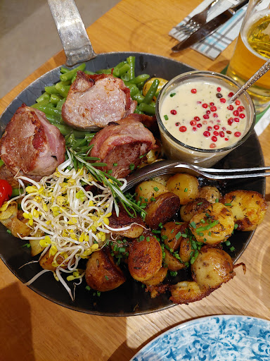 24-07-2021 after a nice tour we decided to have our dinner in Bad Zwischenahn. Our eyes fell on the nice old farmers place turned into a restaurant called Scholjegeres Hof. A nice lady welcomed us and we could choose a table outside or inside, due to the weather forecast we decided to take a table inside. Soon we have been asked what we would like to drink, also the menu card was handed. For the drink we took the alkoholfreie Weizenbier. There is a great choice of game versions, after asking it became clear that the owner has a connection with game harvesting. My decision was the roedeer fillet with mushrooms of the season called Pfifferlinge, together with the backed potatoes and a fine sauce. As starter we became a fresh field salad. Which is good and tasty. The Chef shown his skills how to prepare the roedeer fillet, and together with the Pfifferlinge made the dish to a delicious meal. Also the pork chop is juicy and tasty, together with the Pfifferlinge and backed potatoes . To make the dinner complete a small dessert can be chosen, our choice a nice strawberry cream, and a blueberry tiramisu as expected fine balanced and tasteful. We have had a nice time and sure we will come back another time. To be recommended, auf Wiedersehen und...