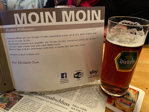 Heute waren wir mal wieder im Strohhalm Bad Zwischenahn. Das letzte Mal gab es noch eine bessere Kritik, aber heute war es einfach nur vernichtend: es wurde zwar angesagt, dass das Essen lange dauert, aber auf Nachfrage, wie lange, kam keine Antwort. Wir haben über 1 Stunde gewartet auf 2 Suppen, 2 Toast's und 1 Baguette. Die Bedienung war so überfordert, dass sie nicht einmal zwischendurch ein gutes Wort für uns fand oder uns informierte, wie lange es noch dauert. Dann kam endlich unser Essen: natürlich alles aufeinmal. Während die heiße Suppe (mit viel Fleisch) gegessen wurde, kühlte das Hawai-Toast schnell ab, es war auch nicht sehr delikat angerichtet. Mein Salami Baguette sah auf den 1. Blick gar nicht so schlecht aus, aber der Salat mit dem Dressing auf dem Teller machte alles zunichte. Ein Baguette muss knusprig sein, das Salat Dressing hatte das Baguette total aufgeweicht.