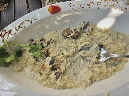 We ordered for starter, a Bruschetta and for main: Spaghetti Frutti di mare (Pasta with seafood) and Risotto with mushrooms.