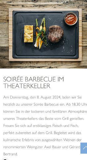 Read moreIrgendwie hatten wir uns diese BBQ-Soirée anders vorgestellt. Die Beschreibung auf der Homepage stimmte nicht mit der Wirklichkeit überein, wie auf den Fotos zu sehen. Es handelte sich um ein 3-Gang-Menue, der Hauptgang war entweder Fisch oder Fleisch. Ich wurde bei dem Filet von Charolais Rind nicht gefragt, wie ich es gegrillt haben möchte, sagte es dem Service Personal. Die Antwort: das ist immer medium, mehr oder weniger. Tja, bei mir war es definitiv mehr, also eher durch. Ich habe bewusst nicht reklamiert, da das Tierchen bereits einmal für mich gestorben ist. Nun gut, obwohl je ein Glas Wein inklusive war, wurde mein Mann nicht danach gefragt, welchen Wein er bevorzugt….. nur weil jemand eine Coke Zero bestellt, muss es nicht heißen, dass er keinen Wein trinkt. Ja, auch hier hätten wir reklamieren können, oder der Herr vom Service hätte von sich aus gefragt, ob ich noch ein zweites Glas von dem gut gekühlten Rotwein möchte. Alles in allem: nicht besonders...