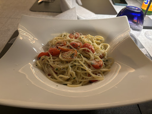 Food - average at best, even for Germany. Nowhere near to how authentic Italian food is like. The bruschetta was obviously a store bought oven baguette, though the toppings were ok. The Pinsa had a nice enough crunchy dough, but the ingredients on top were straight up low supermarket quality. For some to me unknown, unholy reason, the pasta with pesto had CREAM in it. It was also overcooked to a level where I could have used it as a bread spread, but that's just how Germans like it, so I wouldn't directly fault the place for that.