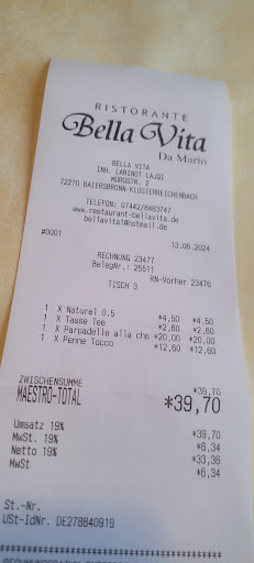 Read moreDon't go to this restaurant clearly doesn't like foreign customers.The guy was rude from.the point we arrived.There was some confusion over our order as he flounced off to kitchen muttering to himself.Only to return 10 minutes later to ask for our order!?He was so horribly rude we just paid for wine and left.Bella Vita might mean good life..but clearly not at this establishment. We have never had such a horrible experience in Germany or any other country...