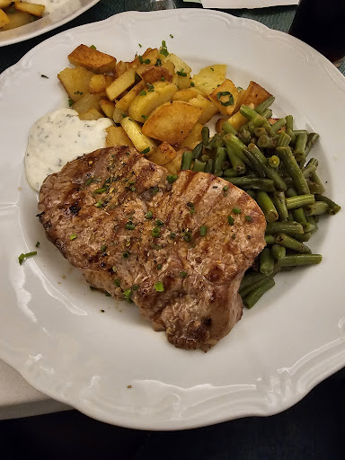 Nach dem Feierabend und einer kleinen Stempelrunde sollte die kulinarische Reise weitergehen. Bereits vor kurzem waren wir in Ballenstedt unterwegs. Einen Abend vorher hab ich bereits angerufen. Leider gab es trotz Nachricht auf dem AB keine Rückmeldung. Während der kleinen Wanderung erneut angerufen und nach einem Tisch gefragt. Um 19 Uhr sind wir dann hier eingetroffen. Ambiente bzw. Ersteindruck war positiv. Der Wirt ist freundlich hat aber seine festen Ansichten bzw. Marotten. Es war relativ leer den Abend (Donnerstag Abend). Nur ein Tisch vorne an der Theke war besetzt. Hier wurde allerdings nur getrunken und sich etwas lauter unterhalten. Hat uns aber nicht gestört! Beim Eintreten wurden wir gleich drauf hingewiesen, dass die Jacke doch an den Kleiderständer sollten und nicht über den Stuhl. Okay dann machen wir das so. Getränkewünsche wurden zügig erfüllt. Guinness vom Fass! Die weiteren Getränke waren ein alkoholfreies Bier und eine große Cola. Der Tisch unterhielt sich relativ laut und wir machten ein "normales" Video angesehen mit Ton. Schnell kam macht den Ton aus vom Wirt. Irgendwie wirkte es, als wenn hier mit zweierlei Maß gemessen wird. Die Speisekarte ist nicht sehr groß, aber es sollte für jeden was dabei sein. Ich habe mich für die Hähnchenbrust mit Pommes entschieden. Das Fleisch ist mit Camembert und Birne überbacken. Dazu gibt es eine kleinen Salat und Preiselbeeren. Geschmacklich gut. Portionsgröße auch ausreichend. Allerdings hätte das Fleisch noch etwas gekonnt. Gerade bei Geflügel bin ich immer vorsichtig. Das eine Stück hatte etwas zu wenig Hitze gesehen. Auch die anderen Gerichte sagen schmackhaft aus. Preislich lagen wir bei drei Hauptgerichten und vier Getränken bei knapp 70€. Kartenzahlung ist möglich. Hier kann man mal...