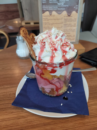 Read moreWir haben den Früchte-Becher und den Erdbeer-Becher sowie einen grünen Tee bestellt. Laut Karte beinhaltet der Früchte-Becher frische Früchte (das hätte man dem Namen nach auch vermutet), aber auch nach längerem Graben konnten wir nur zwei kleine Fruchtstücke finden. Im Erdbeer-Becher waren drei halbe Erdbeeren, und trotz individueller Eissorten-Wahl waren im Becher zwei Kugeln, die wir nicht bestellt hatten. Leider kam der Teebeutel des grünen Tees bereits im Wasser schwimmend am Tisch an, sodass ich die Intensität nicht selbst bestimmen konnte. Das brauchen wir sicher nicht noch einmal. Schade, vor allem bei...