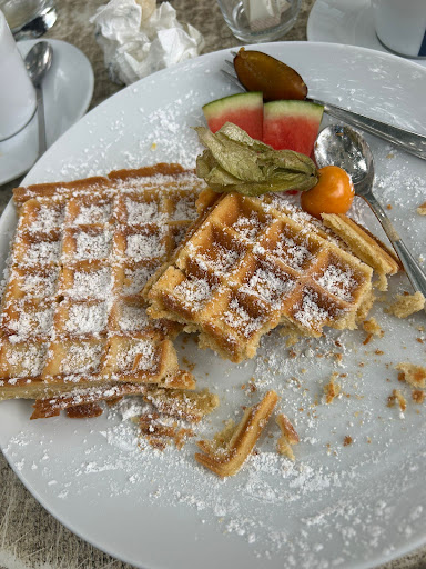 Wir haben das Café kürzlich besucht – mein Mann, unser 4-jähriger Sohn und ich – und waren leider vom Umgang mit einer Reklamation sehr enttäuscht. Bestellt hatten wir zwei Cappuccino, eine Maracujaschorle und eine frische Waffel mit Puderzucker. Die Waffel war der Grund, weshalb wir uns überhaupt für dieses Café entschieden hatten – sie sah bei einer anderen Besucherin sehr ansprechend aus. Die Getränke kamen relativ zügig, die Waffel allerdings erst, als die Heißgetränke bereits leer waren. Schon beim ersten Blick fiel auf, dass sie sehr dunkel geraten war, im Vergleich zu der am Nebentisch deutlich zu lange im Eisen. Beim Hineinstechen mit der Gabel bestätigte sich das: hart und trocken. Wir haben sie zu dritt probiert – keiner konnte sie wirklich essen. Eine zweite Waffel auf dem Teller wurde gar nicht angerührt. Was zusätzlich auffiel: Die junge Bedienung wirkte etwas überfordert und kaute während des gesamten Service Kaugummi – was keinen besonders professionellen Eindruck hinterließ. Während unseres Aufenthalts fragte niemand, ob alles in Ordnung sei – auch nicht, als klar war, dass die Waffel kaum angerührt wurde. Beim Bezahlen – auf das wir über 20 Minuten warten mussten – habe ich das Thema angesprochen und höflich gefragt, ob man uns entgegenkommen könne. Die Reaktion der Bedienung war leider weder verständnisvoll noch lösungsorientiert. Sie sagte, es sei mein Pech, weil ich nicht gleich etwas gesagt hätte – dann hätte man vielleicht eine neue Waffel machen können. Eine neue wollte ich aber gar nicht – ich wollte lediglich Rückmeldung geben und hatte auf etwas Kulanz gehofft. Ich sollte nicht mit ihr Diskutieren war ein weiterer Satz. Letztlich habe ich für etwas bezahlt, das wir in dieser Form gar nicht bekommen haben – nämlich eine genießbare Waffel. Wir haben die Waffel kaum angerührt, was auch offensichtlich war. Es gab keinerlei Entgegenkommen. Dass man mit Feedback so umgeht, ist für mich nicht...
