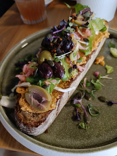 Read moreWe had a pleasant breakfast at this cozy café, which I'd rate 4 out of 5 stars. The dish I ordered, as shown in the picture, featured a beautifully presented slice of artisan bread topped with a vibrant mix of olives, pickled vegetables, fresh greens, and a flavorful spread. The combination of textures and flavors was delightful, making for a satisfying meal. While the food was delicious, the portions were a bit on the smaller side. The ambiance and service were good, making it a great spot for a relaxed...
